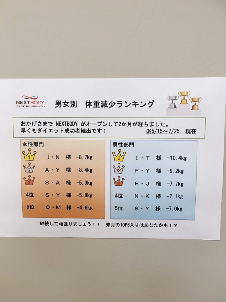 お客様の体重減少ランキング掲載中!