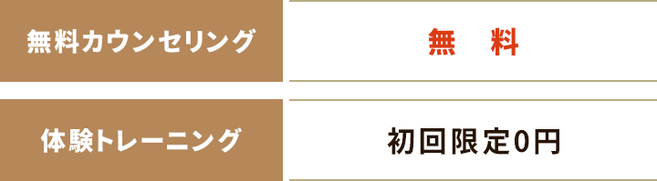 そんな方のために気軽にできる無料体験トレーニングをご準備しております。