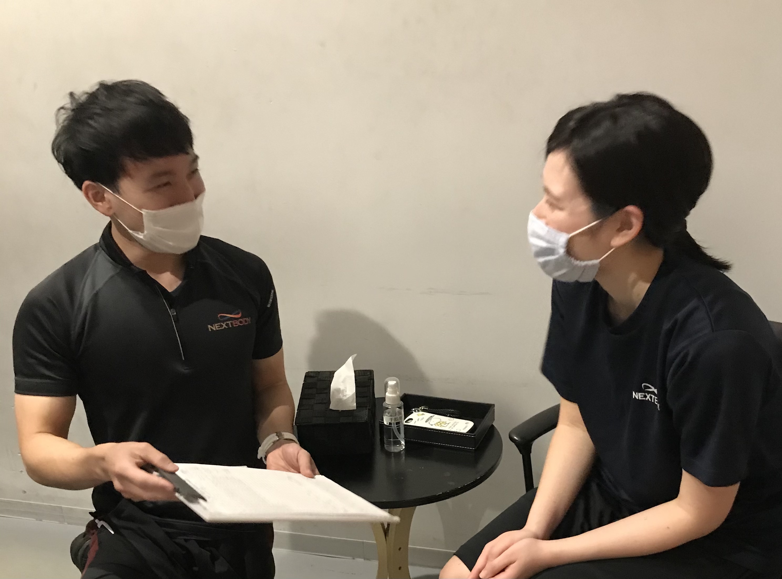 広島のパーソナルダイエットジムNEXTBODYパーソナルトレーナーの上本です。本日お越し頂きました女性のお客様、