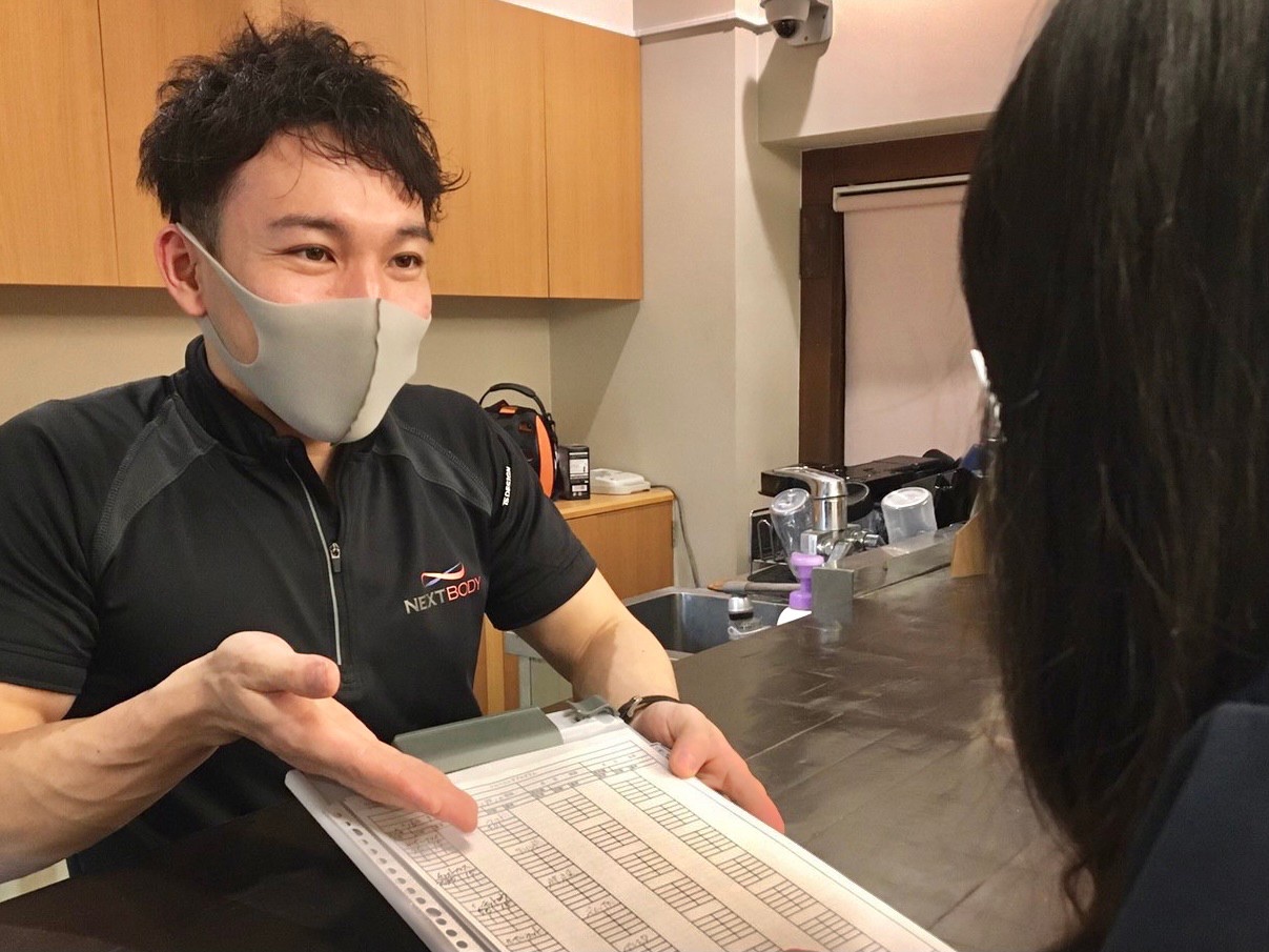 広島のパーソナルダイエットジムNEXTBODYパーソナルトレーナーの宮越です。本日お越し頂きました30代女性のお客様。